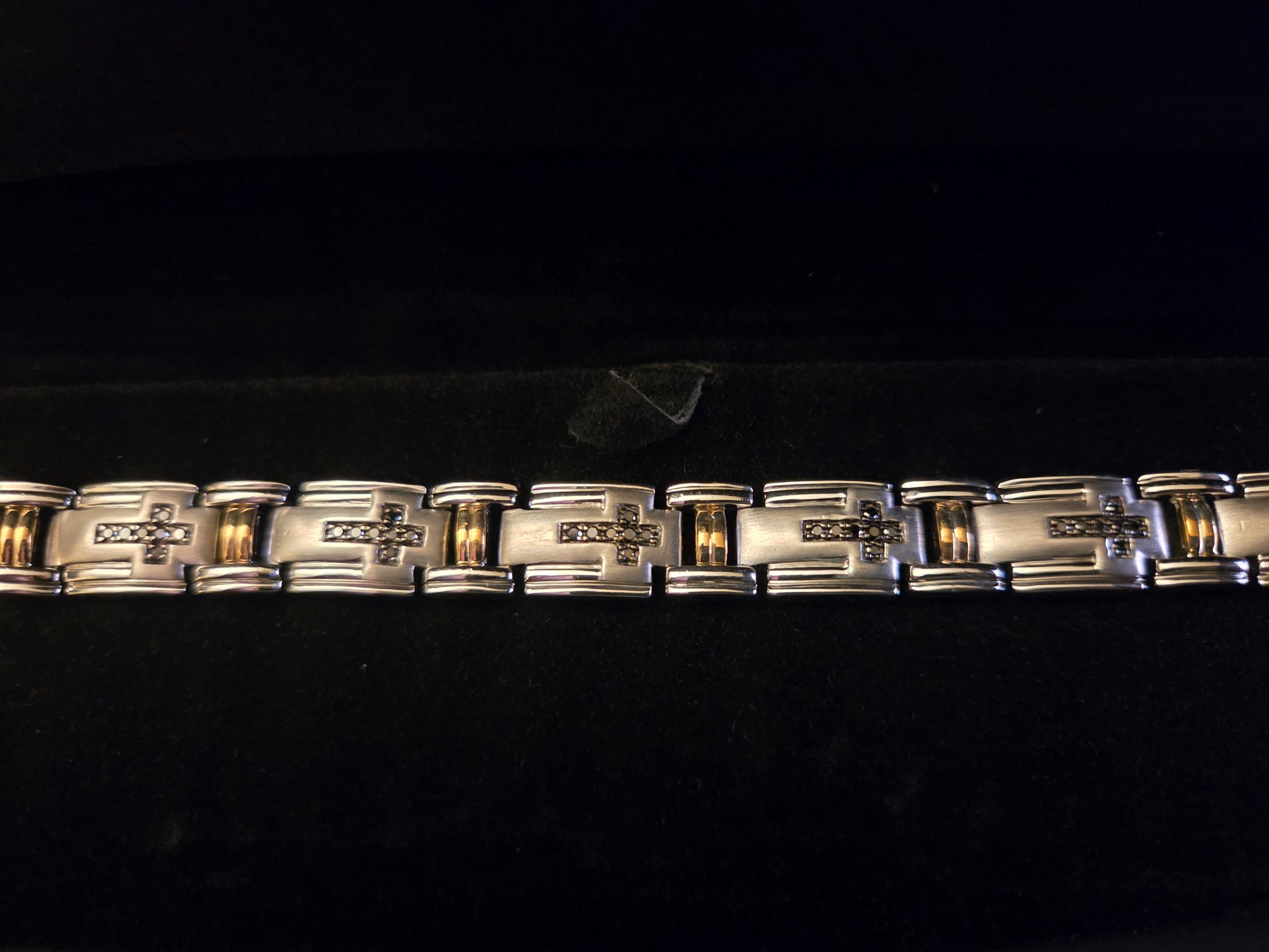 Men's 3/4 Carat Black Diamond Link 8 1/2" Bracelet in Sterling Silver and 10k Yellow Gold (Damaged Box)