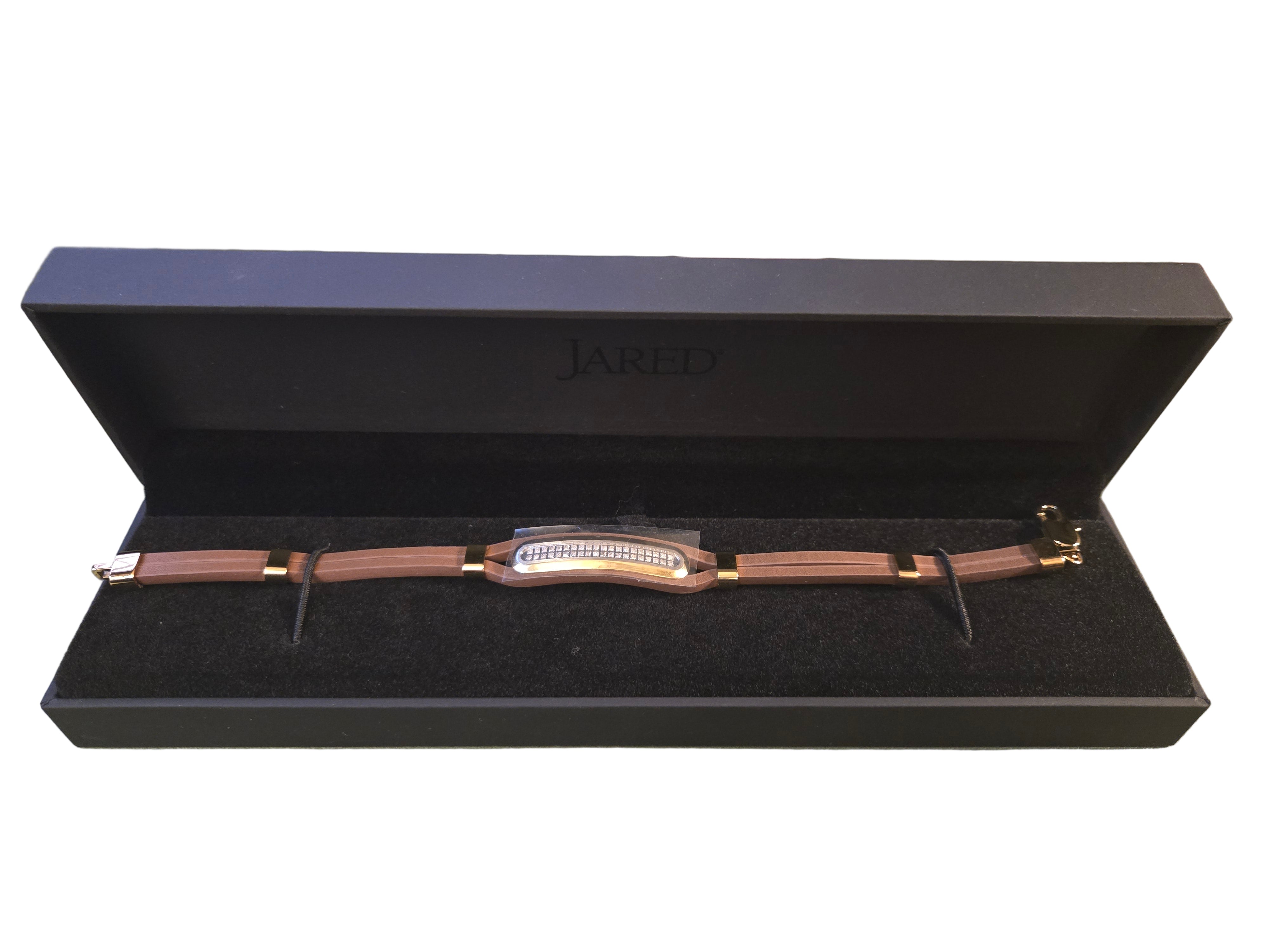 Men's Diamond Bracelet 1/5 ct tw Round Gold Ion-Plated Stainless Steel/Brown Leather 8.5"