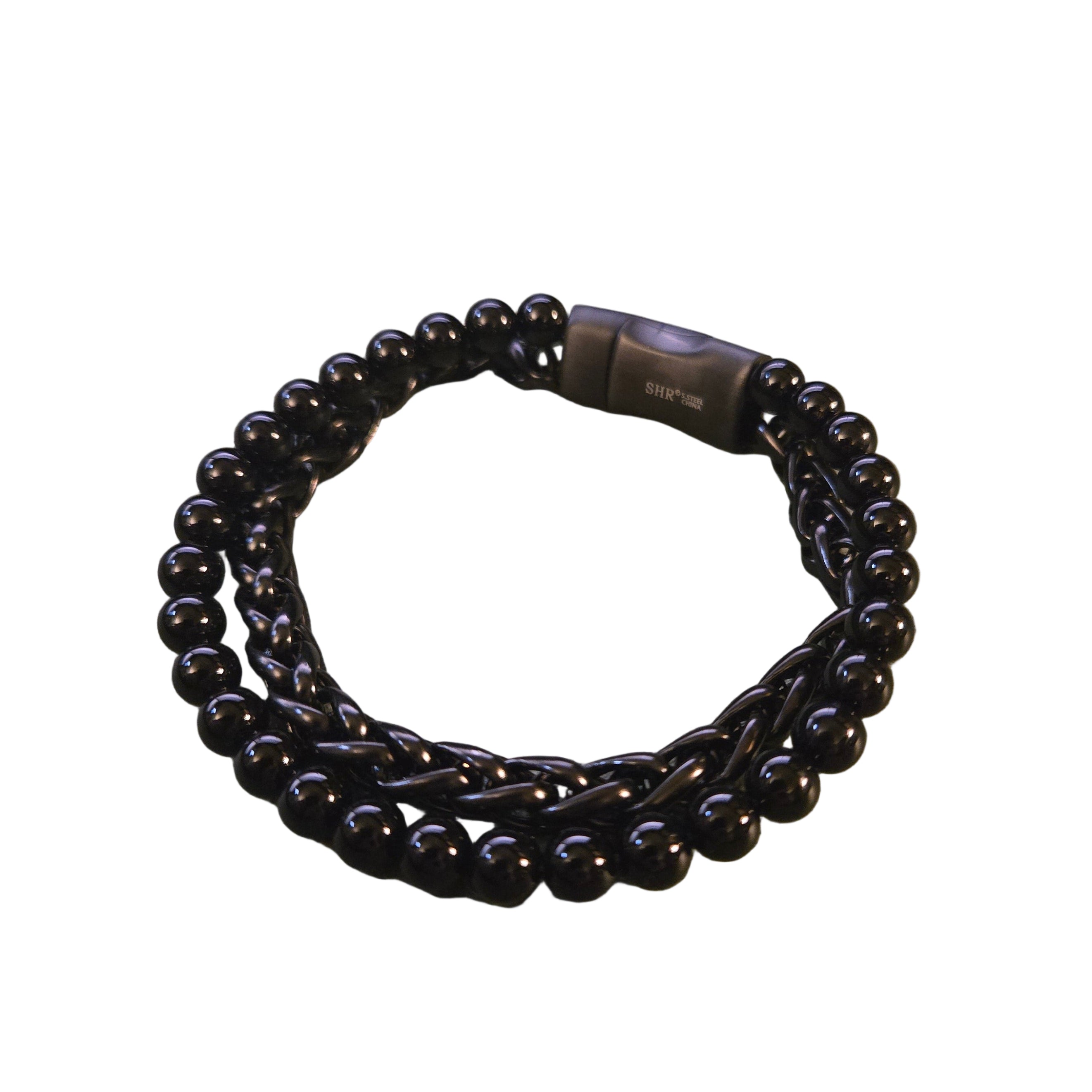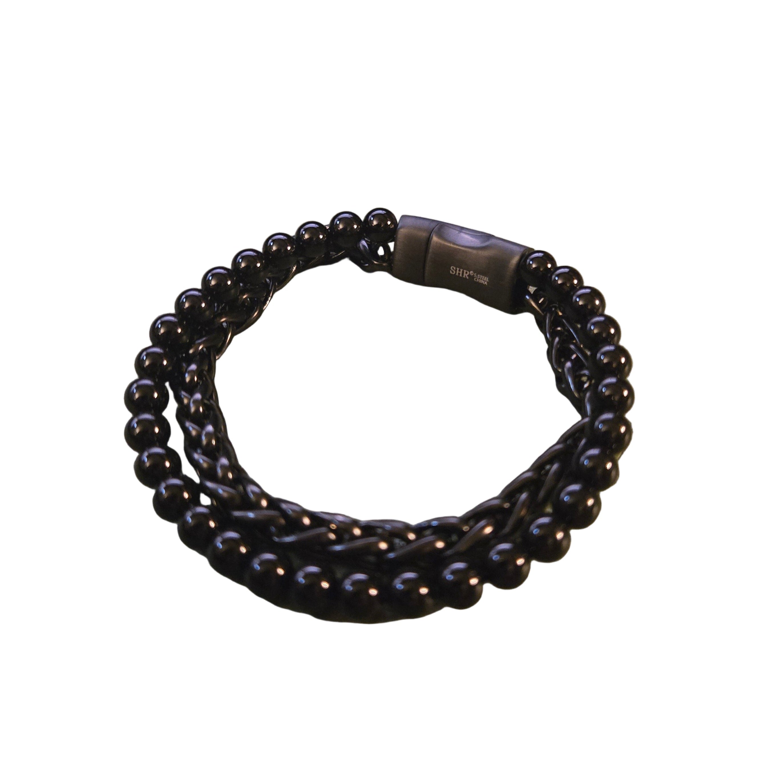 Men's Two-Layer Chain Bracelet Black Ion-Plated Stainlesss Steel (New)